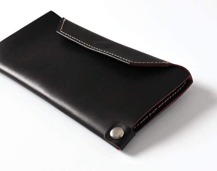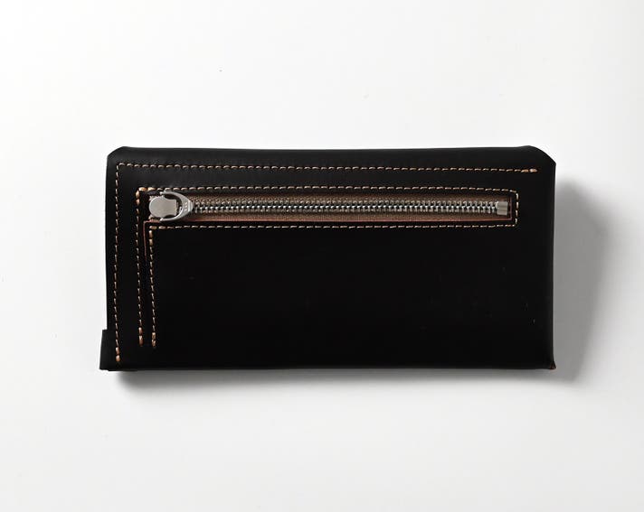 - ポケットに収まる実用性を担保した長財布がテーマ。構造・パーツ全てこだわり最薄を目指した長財布。