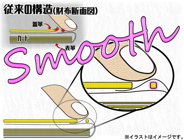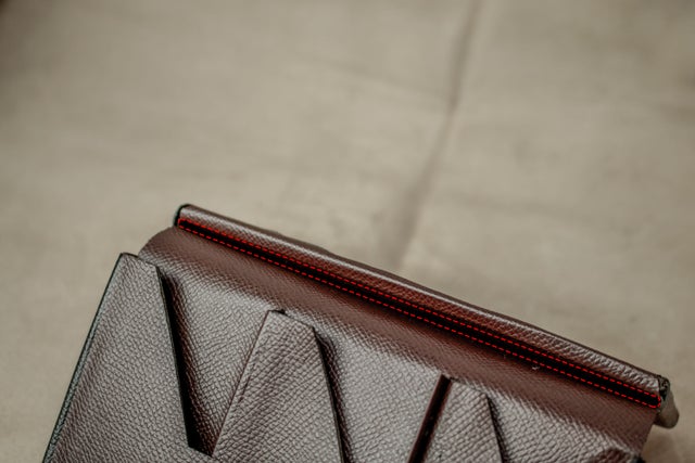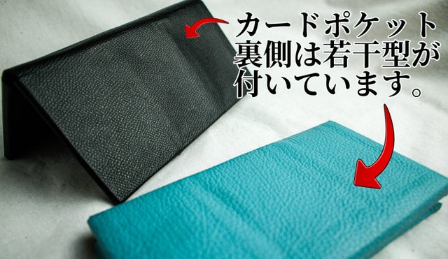 また厚みが出ないよう、対面のカードポケットの凹凸をいかして、財布自体の膨らみを抑えました