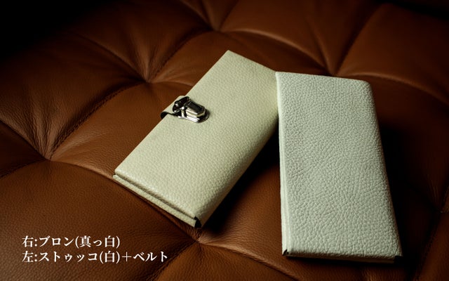 ■ご支援いただいた財布と同色のベルトをお付けします。マストロット社のしぼ革をお選びの場合、ベルトの内側は蓋革と同色となります。