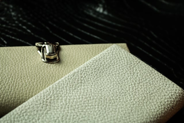 外観にデザインを持たない財布なので、たった一つの金具がとても綺麗に映えます