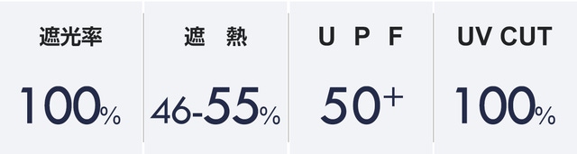 - 遮光率100%、UVカット率100%、遮熱率55%、UPF50+と高水準の機能性!