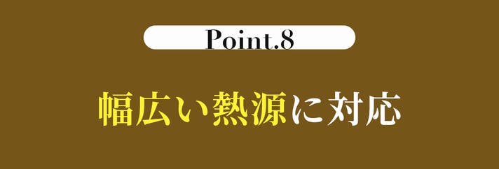 IHをはじめ、ガス・電気・セラミックコンロなど幅広い熱源に対応。