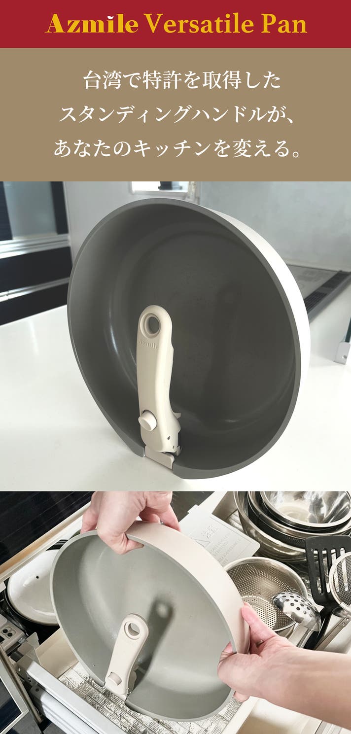 これこそ、他にはない「Versatile Pan」だけの、あなたの暮らしに寄り添う特許ハンドルです。
