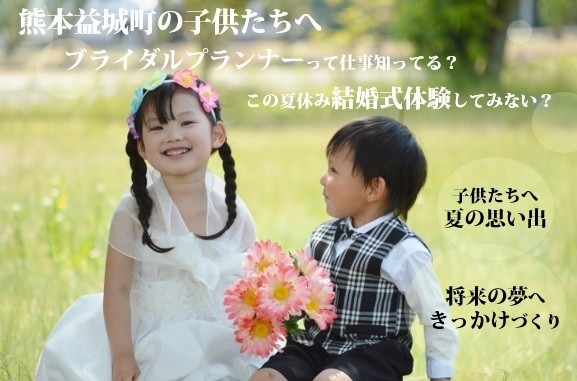 結婚式に関連する体験ブース・演出タイムを設け、子供たちに色んな体験をしてもらいながら、ブライダルプランナーの仕事も知ってもらい、そしてこれからの子供たちの未来に、沢山の夢と、希望と笑顔を届けたいと思っています。
