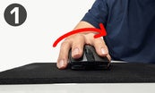 マウスを持つ時のように手を置いてみてください。 マウスに手を置くと手首を反時計回りに捻るため、親指と小指が机に触れます。 このような姿勢は、肩から肘、手首まで無理な力が加わってしまい、持続すると不快感を誘発しやすくなります。バーティカルマウスは人間工学的な原理を取り入れ、手首がとても楽です。