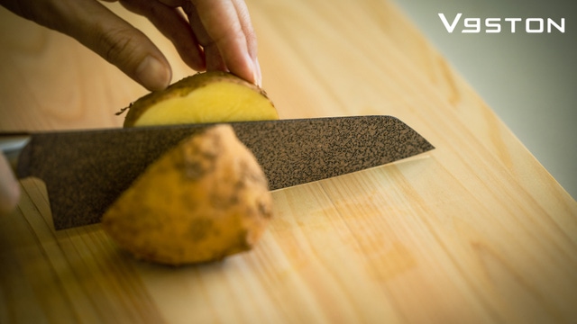 刃にはモリブデンバナジウムステンレス鋼を使用し、刃先はハマグリ刃という日本刀と同じ構造を採用しています。また刃の側面部分はストーンバリアコーティングを施し、軽い力でスパッと切れる鋭い切れ味が特徴の包丁です。