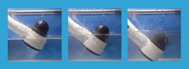 - シャワーヘッド内に流水で回転するフィンを内蔵し、脱着可能なアタッチメントを接続することで実現!