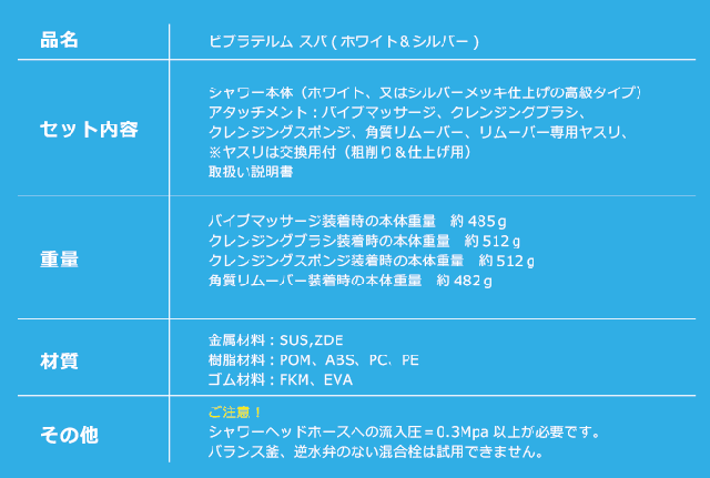 - 【1台5役】シャワーだけじゃなく、ビューティースパ機能用のアタッチメントを用いてリラックス!
