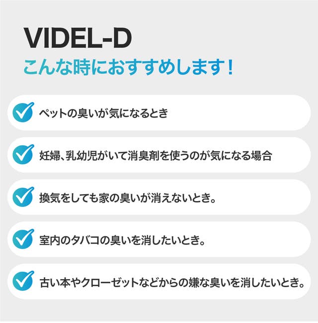 不快な臭いがする場所にVIDEL-Dを置いて作動させてみてください!