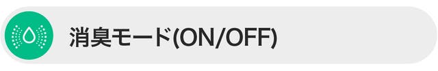消臭ボタンをタッチすると消臭モードが作動し、LEDパネルの消臭LEDが点灯します。また噴射しているような絵文字が表示されます。