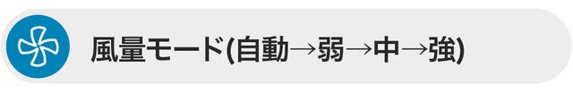 風量ボタンを押して手動で風量を調節することもできます。(弱風→中風→強風)
