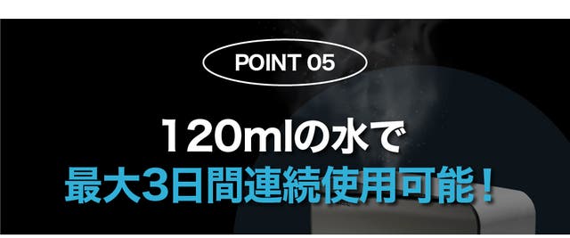 水を目盛りまで120mlを入れると、最大3日間使用できます。