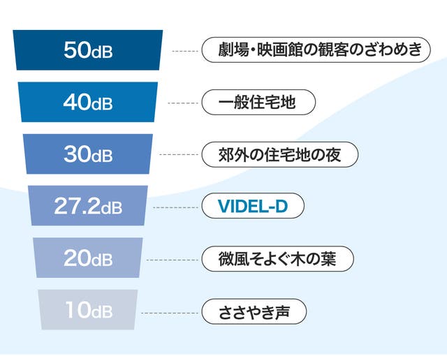 弱風基準27.2dB(A)、強風でも34.9dB(A)で、ずっとつけっぱなしでも気にならず静かに使用できます。