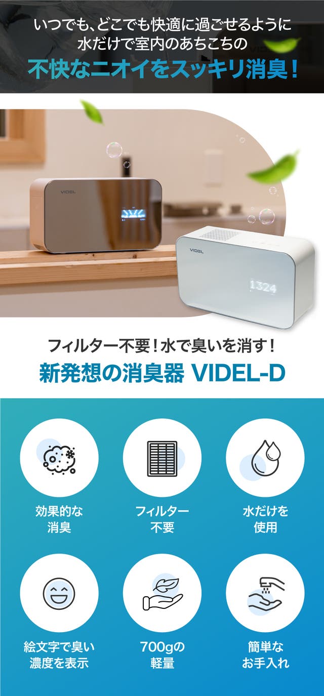 【数量限定】フィルター不要!水だけでOK!新しい消臭器『VIDEL-D』x1