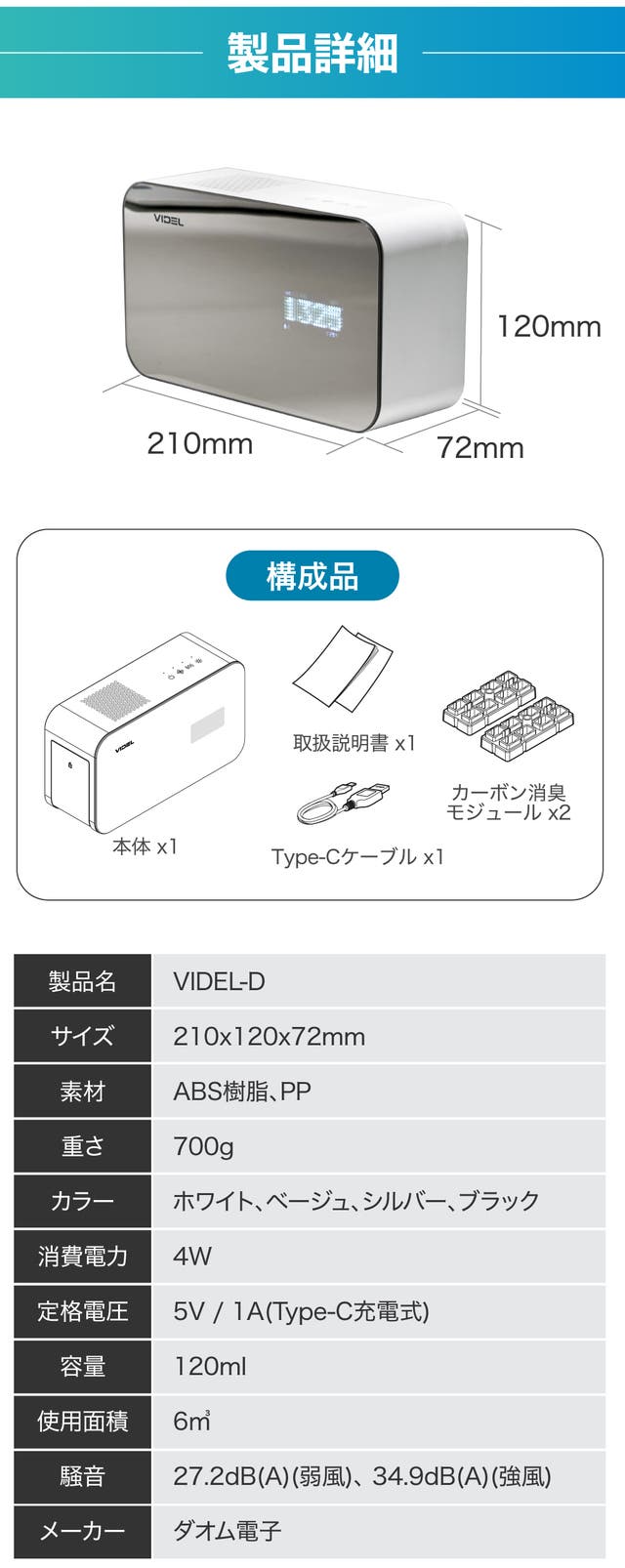 VIDEL-Dは、片手で持てる700gの軽量で、どんな空間にも置けるコンパクトなサイズとを誇ります。