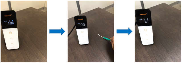 物体表面の汚染度を測定できるルミテスターを用い、ハキュート を使って清掃した前後の汚染度の数値を調べてみました。