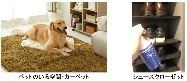 また、空間もしくは臭いの気になる部分に噴霧することで、消臭効果を発揮します。
