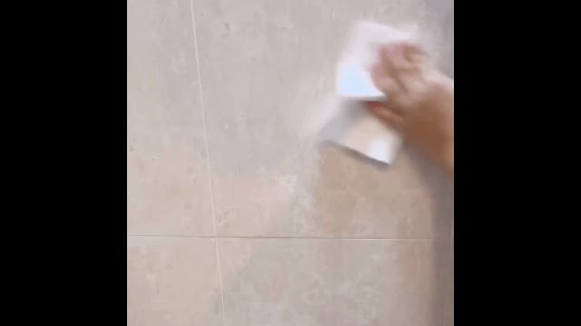 ①壁をキレイにして、付属した両面テープを貼り付けします。