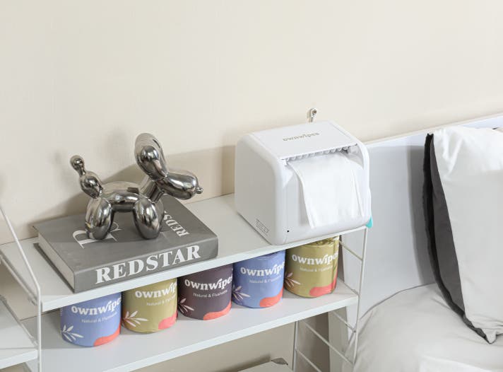 ownwipesティッシュマシンの専用ティッシュペーパーは二重構造で、肌触りが良く、使いやすくなっています。水溶性ですので、使用後に水に流せます。