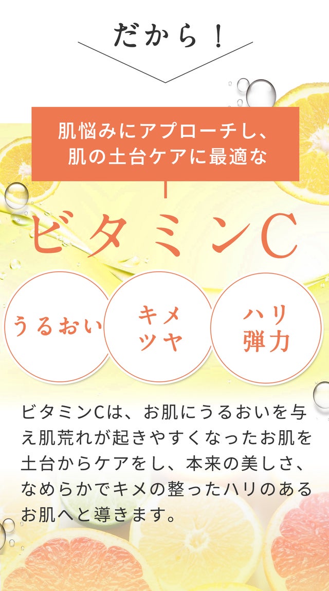 伸びもよく、しっとりとしたテクスチャーは、つっぱる感じが苦手でビタミンC美容液を使いたいけど使えなかった方にも喜んでいただける商品です。