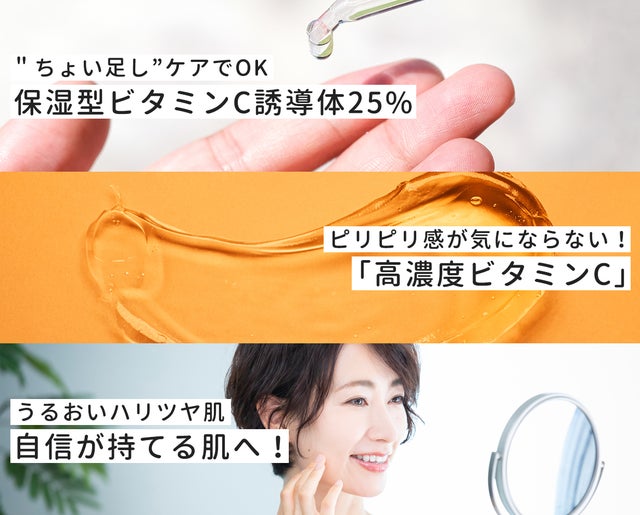- 保湿型ビタミンC誘導体25%配合!"ちょい足し"ケアで、増え続ける肌の悩みにアプローチ