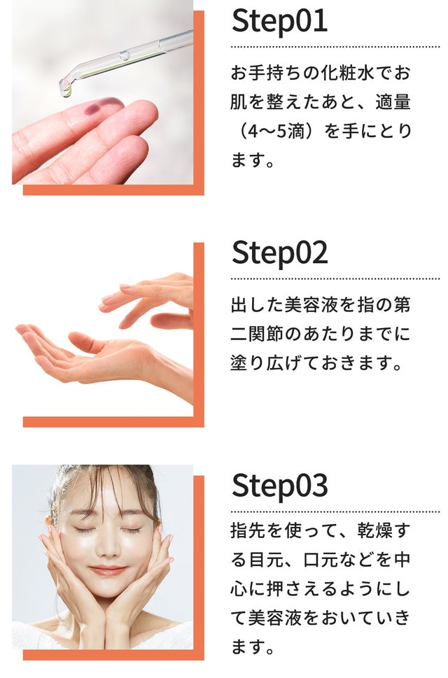 普段使用している化粧水の後、数滴使うだけなので手軽ですし、