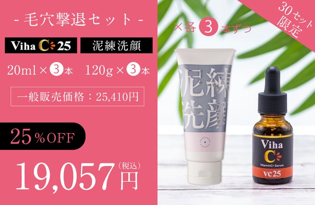 【毛穴撃退!25%OFF】30セット限定・VihaC25×3本+泥練洗顔×3本