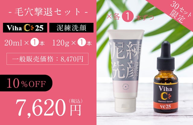 【毛穴撃退!10%OFF】30セット限定・VihaC25×1本+泥練洗顔×1本