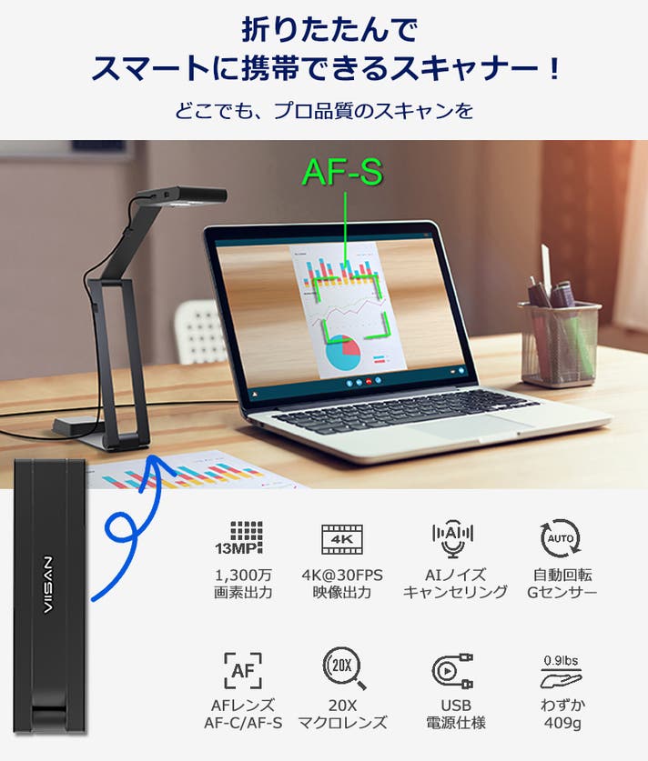 世界のデジタル化を支え続けるVIISANから、ウェブ会議、プレゼン、資料整理まで、デスクワークを効率化する多機能スキャナー「VIISAN Portable VS13AM」登場!