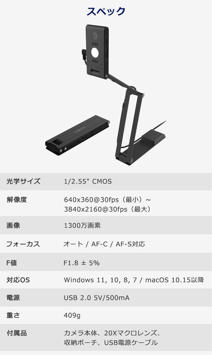 ・専用ソフトVIISAN VisualCam使用(日本語設定対応・無料)