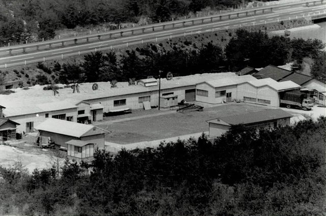 (昭和40年に滋賀県にパイ製造工場を建築。後方の道路は名神高速道路)