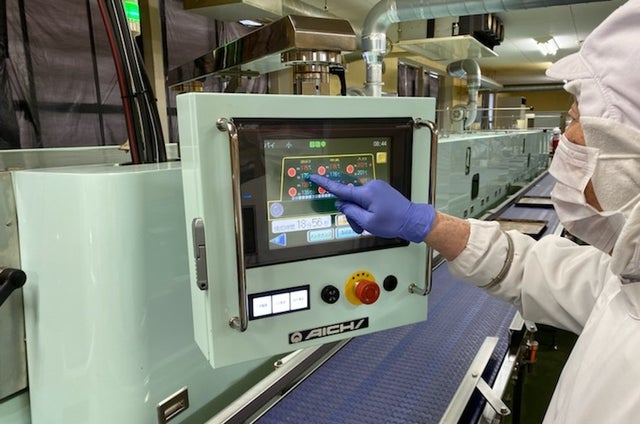 (トンネル式焼成窯にてゆっくり45分かけて焼き上げていきます)