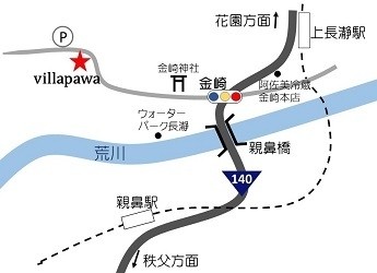 関越道花園ICから秩父方面へ車で30分(皆野寄居有料道路ご使用20分)