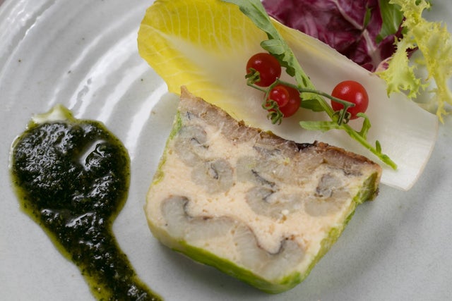 (フレンチ前菜の王道テリーヌ料理。画像は【穴子と白身魚のテリーヌ】)