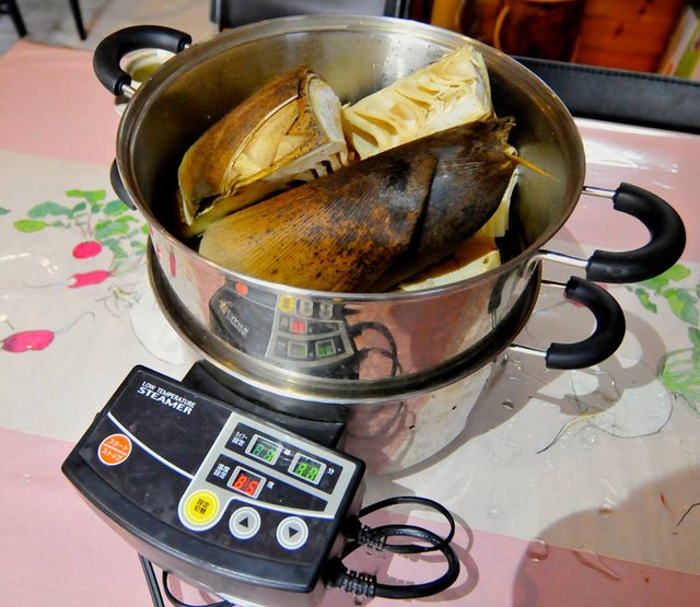 (画像は低温スチーミング調理器具による筍の低温スチームの様子)