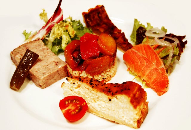 (『パテドカンパーニュ』や『ラタトゥイユとクスクス』などが楽しめる冷前菜5品盛合せ)
