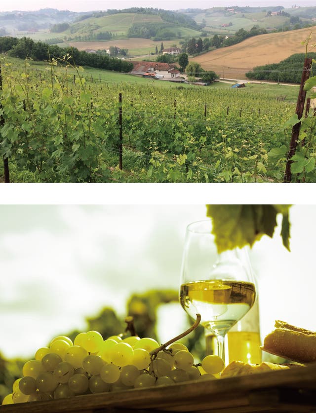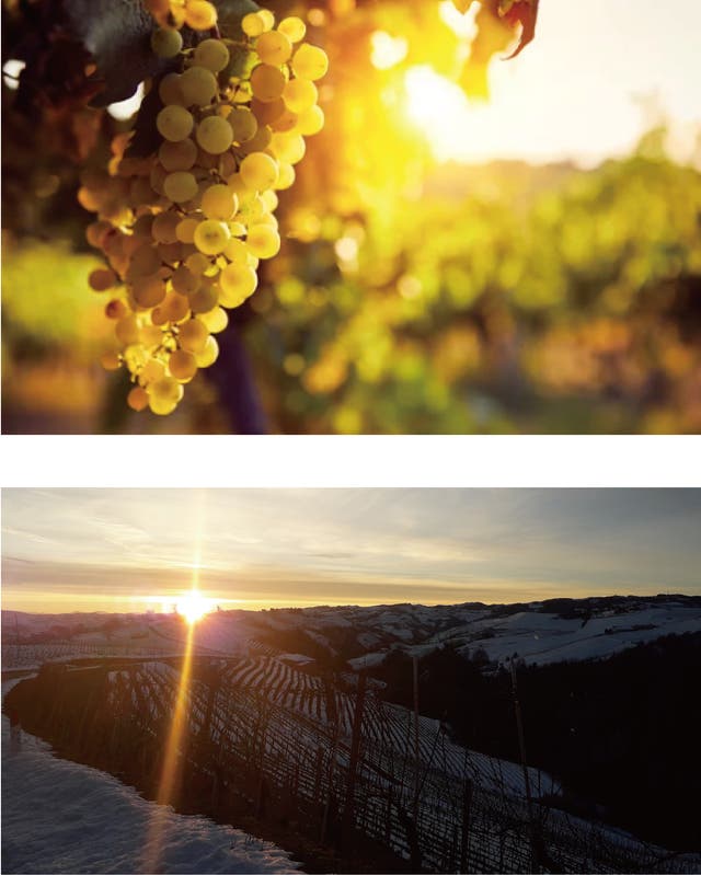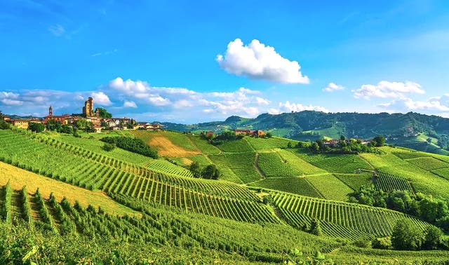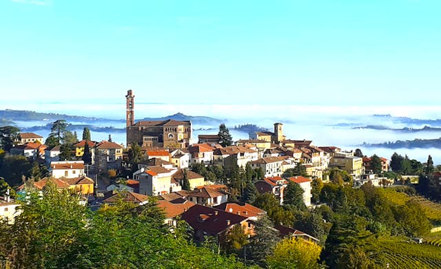 波のように続く葡萄畑に覆われた丘、その合間に点在する中世の城を中心とした集落を望むことができ、葡萄畑とシャトーが延々と続くこの景色はピエモンテならではの美しさです。