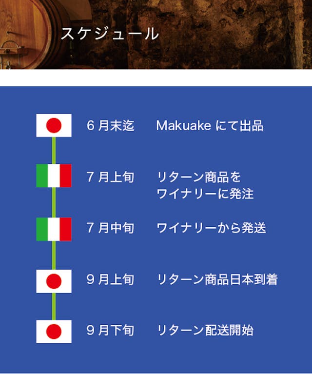 リターン品の配送が完了するまで、Cantina Inc.はCa'Richetaの日本における独占販売権を有する正規代理店です。詳細に関しては、ページ下部のリスク&チャレンジをご確認ください。