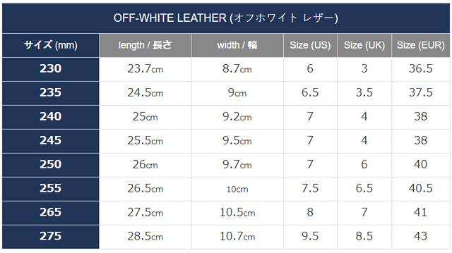 ※ホワイトのみサイズピッチが異なりますので、ご注意ください。