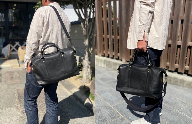このサイズ感なら、荷物の多いビジネスシーンも1泊2日もスタイリッシュに持つことができます。