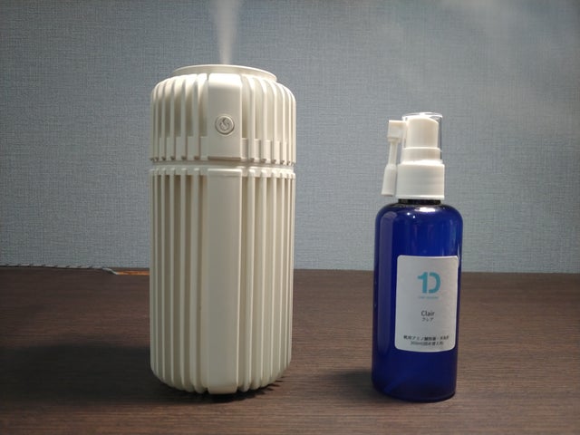 A : 使用できる空間の広さは、ご利用環境や設置場所により多少異なりますが、デスク回りのエリア約2畳程度です。また、効果の持続期間は6時間となっています。エアコンなどの風の流れを利用することで、効果を得られるエリアを広げることができます。