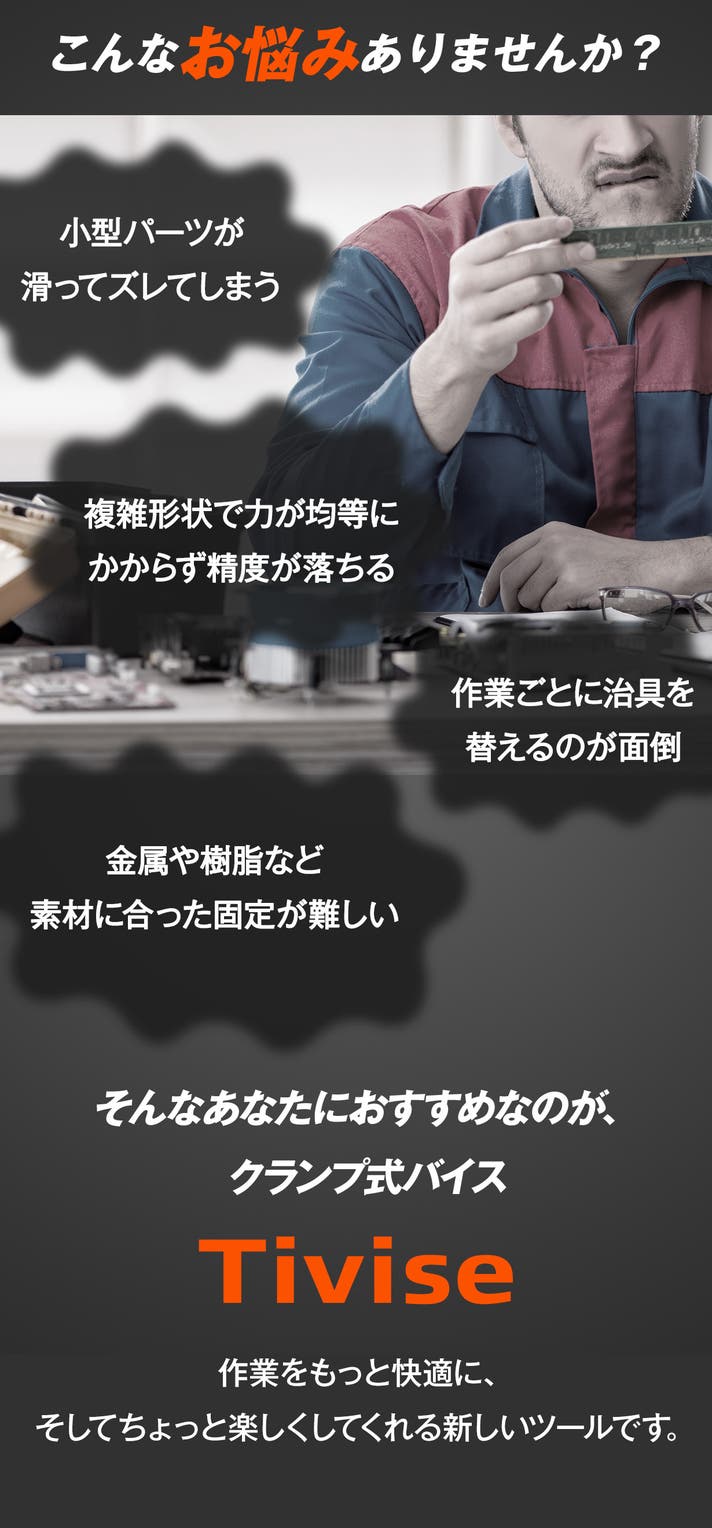 今回提案する商品は三層フラクタル構造で、どんな形状も自在にホールド!クランプ式バイスです。ぜひこれを広めたい、今までとは違った視点で提案できれば良いなと思いプロジェクトの立案に至りました。