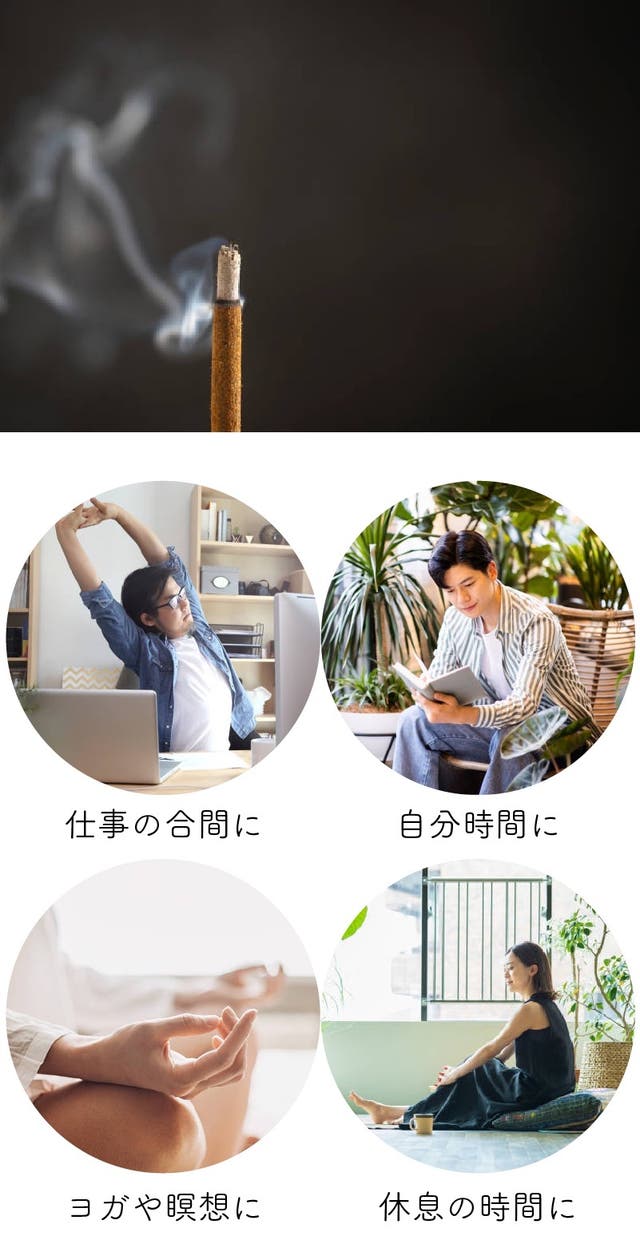 最も一般的な使用法は、インセンスを焚いて香りと光を楽しむことです。部屋に芳香を広げ、穏やかな雰囲気を演出します。全身の筋肉が緊張から解放され、癒しのひとときを提供します。