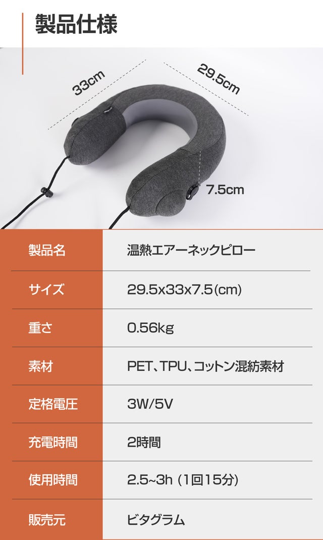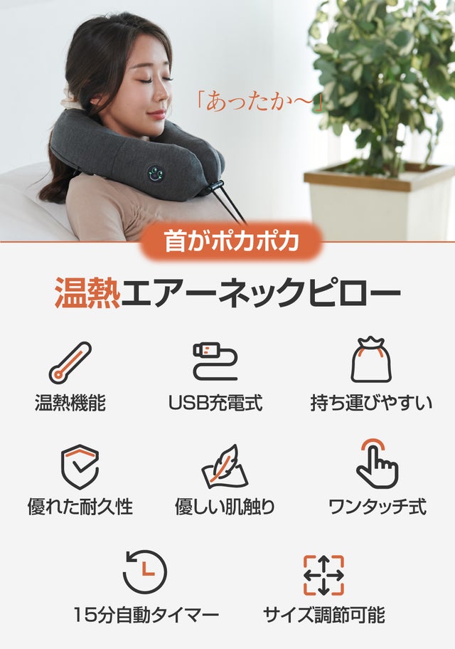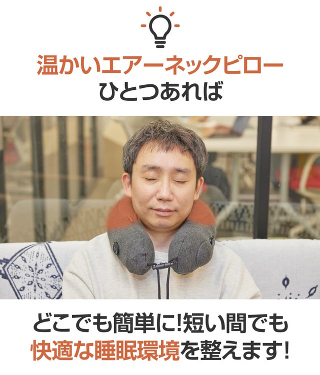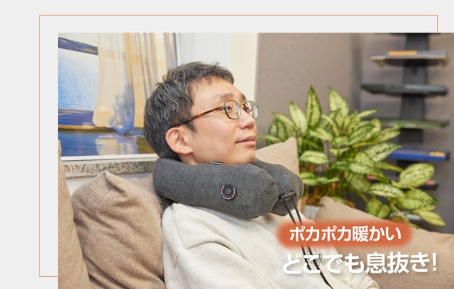 エアー温熱ネックピローでどこでも快適にお過ごしください。