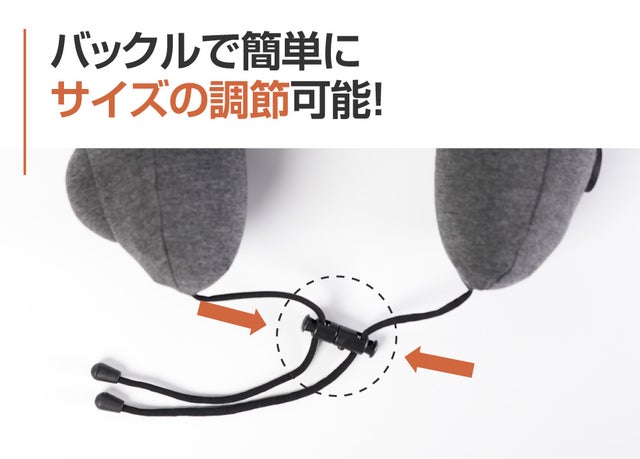 A.ネックピローの両下部分にバックルが付いているのでバックルを引っ張ってサイズを調節できます。