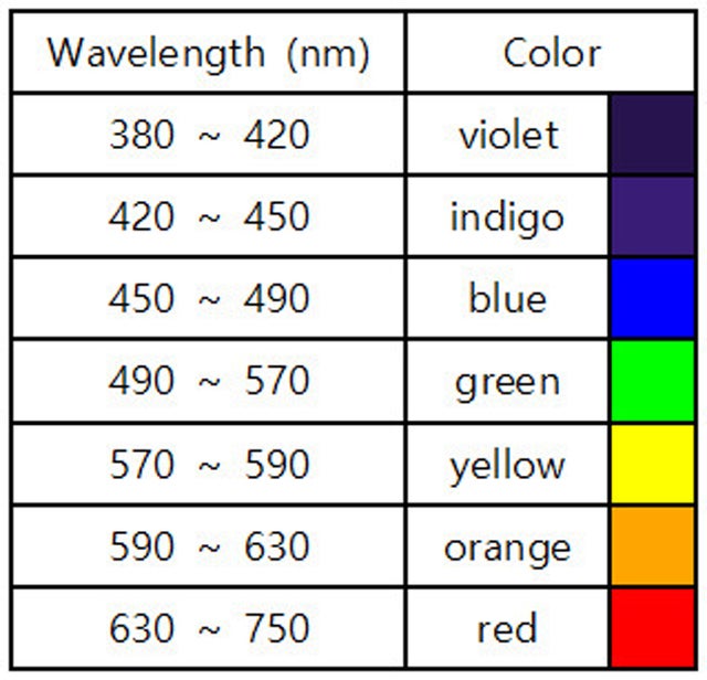 (教材によって、(最小)380nm~(最大)780nm表記で異なる場合があります。)