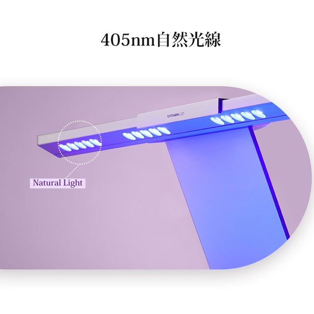 そこで我々はデスクワークをしながら照明としても使え、人にも影響を与えない除菌器具をたくさんの方々に提供できることはできないかといろんな方法を駆使して情報を調べつくした結果、 LED会社と言えばだれもが耳にしたことのある日亜化学でも2021年度に開発に成功した405nm(可視光線除菌)光を利用して自然な光で目や肌にもやさしく除菌しながら照明としても使えるVitamin LEDスタンドを見つけることに成功しました。