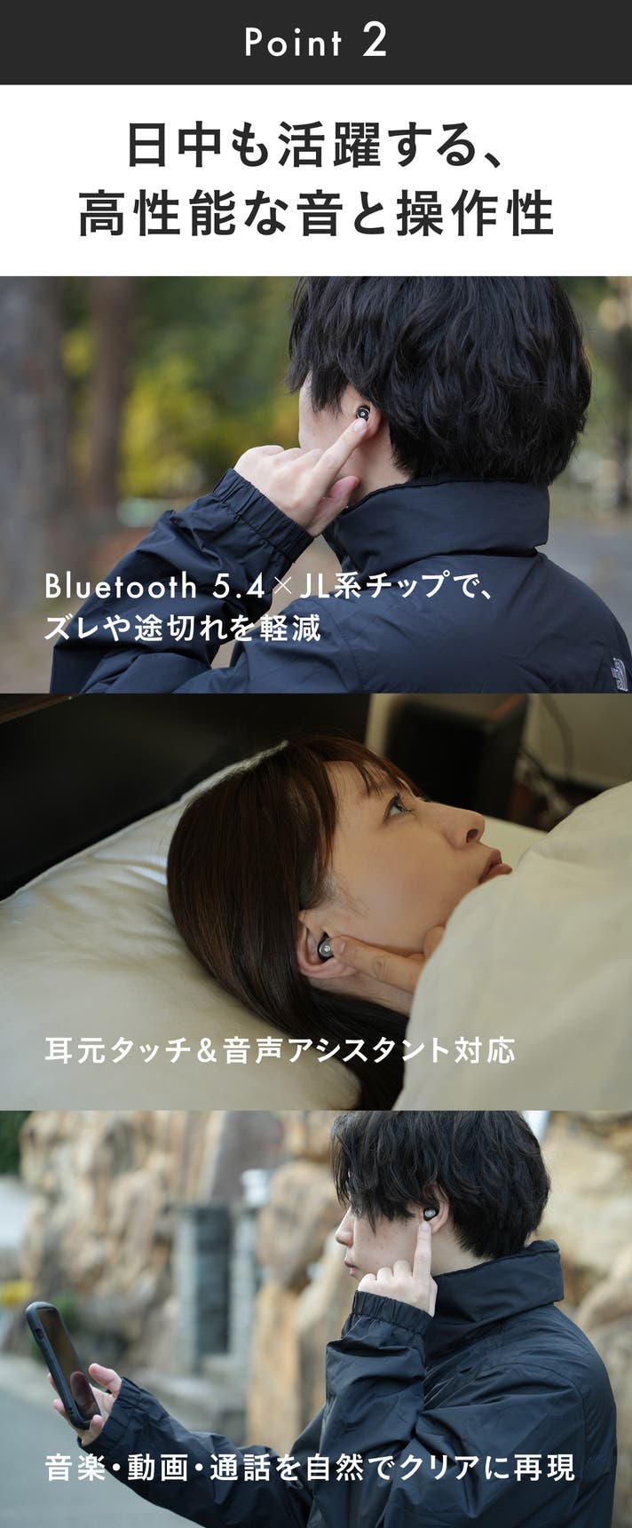 - 『24時間、どこでも快適。』耳元タッチで操る、軽やかな3g。