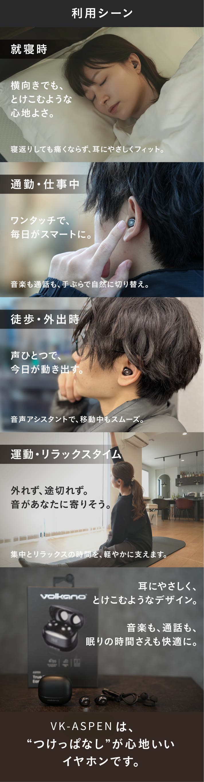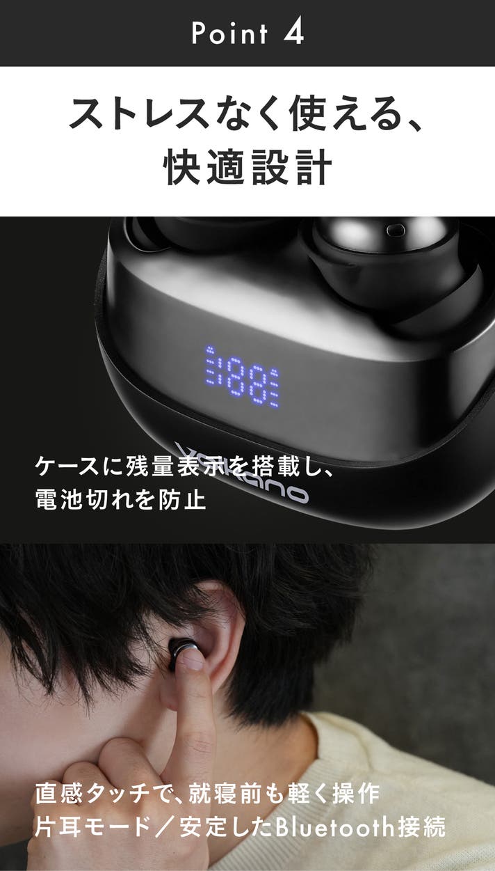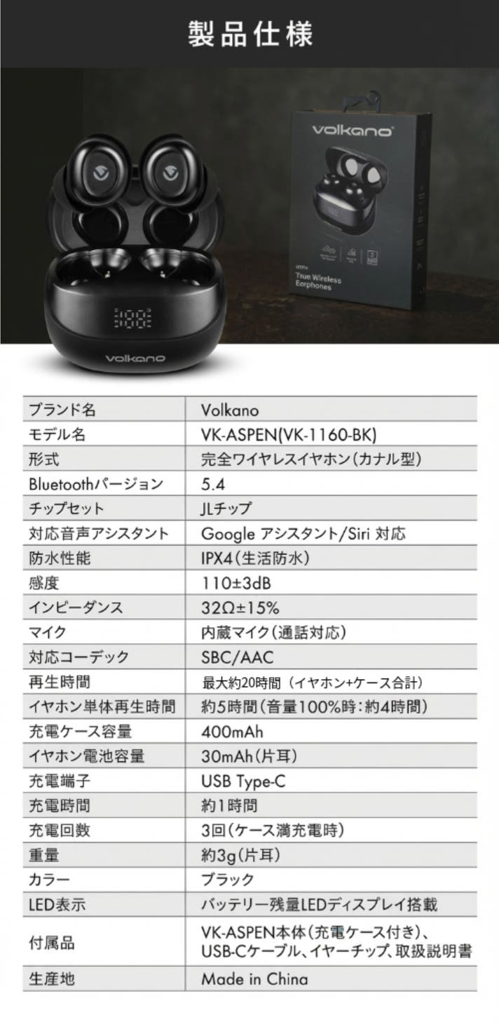 - 「Volkanoが導く澄んだ音。Bluetooth5.4で途切れず上質。」