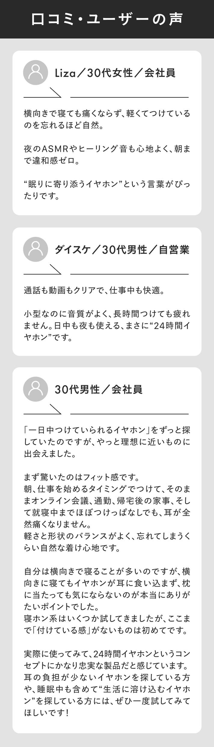 - 『10mm × 3g』の極小カナル型。 横向きで寝ても、耳に“とけこむ”快適さ。